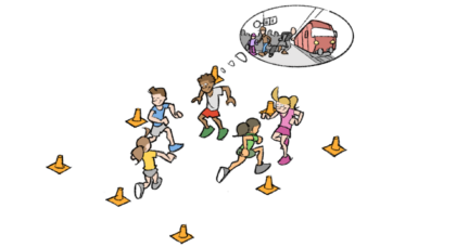I bambini si muovono in ordine sparso seguendo la musica in uno spazio delimitato –...