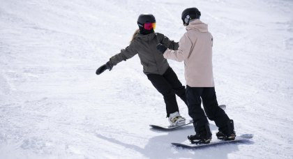 Una posizione di base stabile consente alle snowboarder e agli snowboarder di mantenere l’equilibrio e...