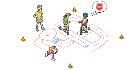 I bambini imparano a utilizzare il monopattino in modo corretto. Sanno comportarsi in modo responsabile...
