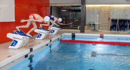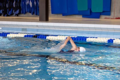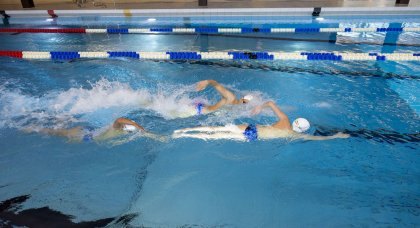 Le nuotatrici e i nuotatori spostano il proprio corpo in avanti nel modo più efficiente...