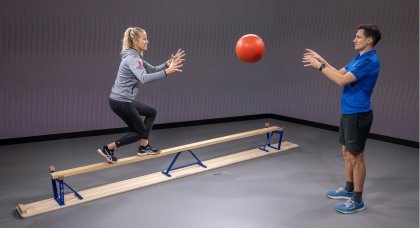 Questo esercizio allena contemporaneamente forza, equilibrio e percezione. Tanto più velocemente si eseguono le ripetizioni,...