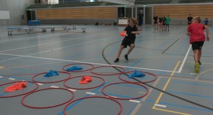 L'esercizio sviluppa la capacità dei bambini di cambiare rapidamente direzione durante una corsa.