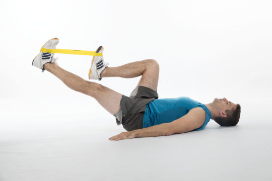 Estendere le gambe con la fascia elastica attorno ai piedi è un esercizio efficace per...