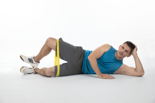 Eseguendo una rotazione esterna della gamba superiore con la resistenza della mini fascia elastica, è...