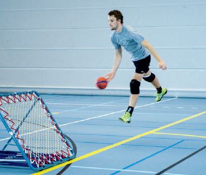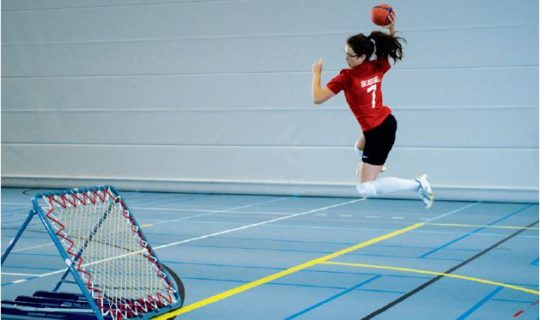 Nel tchoukball, la ricezione è importante tanto quanto il lancio. Il giocatore cerca di posizionare...