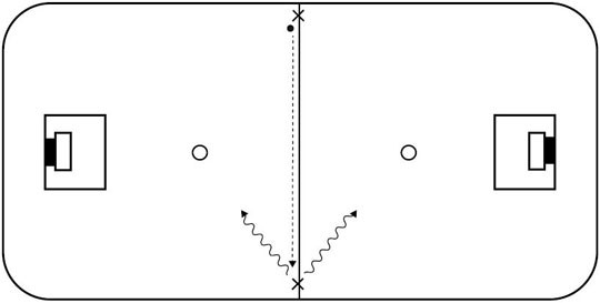 Questo esercizio può essere senza fine: i giocatori attaccano in due contro uno nei due...