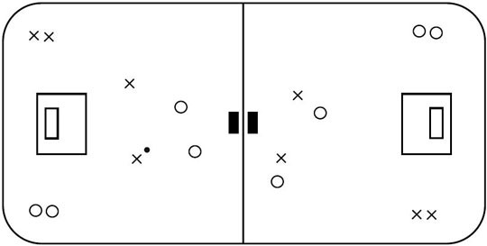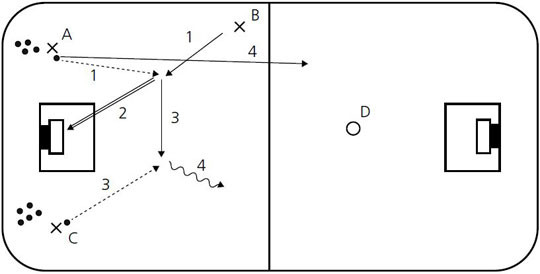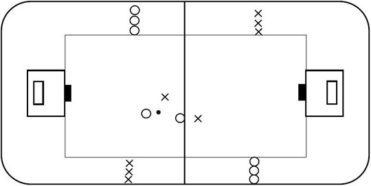 Questo esercizio sviluppa la comprensione del gioco. I giocatori acquisiscono le basi della tattica individuale...
