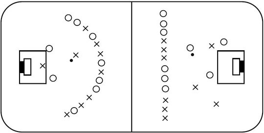 Con questo esercizio, i giocatori prendono dimestichezza coi sistemi di gioco difensivi. L’allenatore spiega loro...