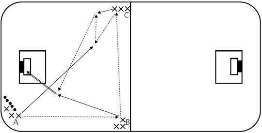 In questo esercizio, i giocatori effettuano un gioco di passaggi rapidi e in movimento, concludendo...