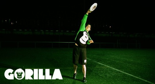 Un esercizio in cui viene mostrato come lanciare il frisbee sopra la testa. Il lavoro...