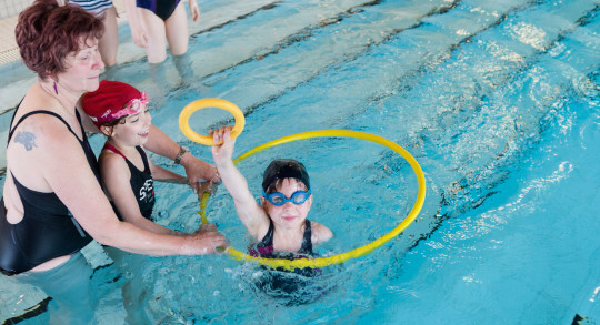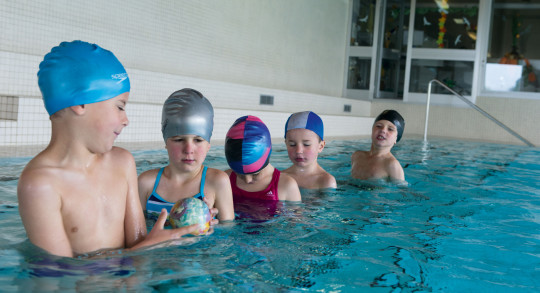 Esercitandosi in questi elementi, i bambini imparano le basi per essere in grado di nuotare...