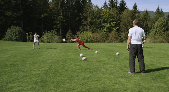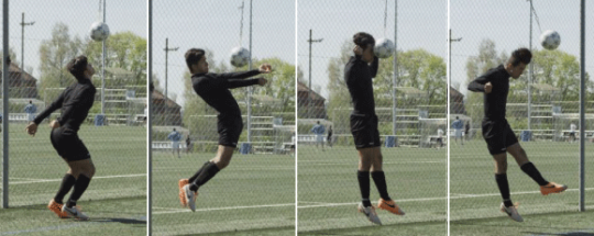 Il pallone si avvita su sé stesso dopo essere stato colpito col piede. L’obiettivo è...