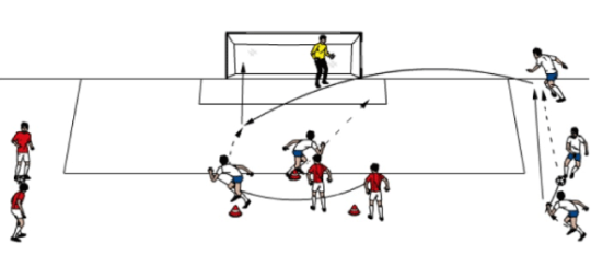 Durante questo esercizio, i giocatori allenano le conclusioni di testa sotto pressione avversaria e i...