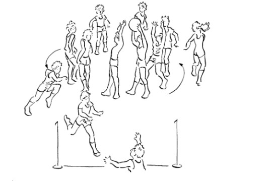 Con questo gioco i bambini si esercizio a lanciare e a ricevere il pallone. Inoltre...