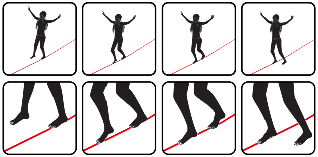 Questo esercizio introduce alla posizione di base dello slacklining. Si provano i primi passi una...