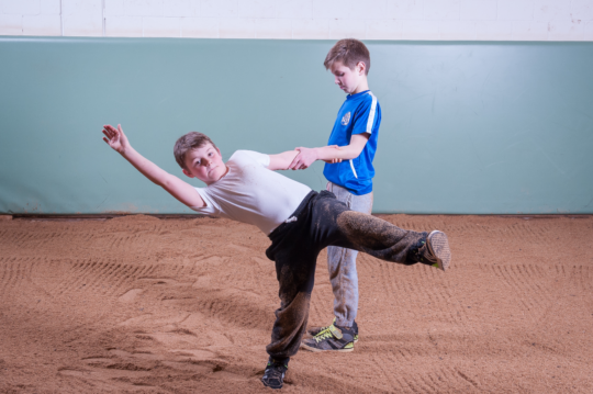 In questa lezione i bambini imparano le tecniche di caduta «Hüfter» (movimento con le anche)...