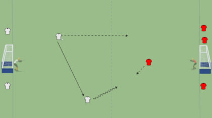 Die Spieler/innen können 2:1-Überzahlsituationen schaffen.