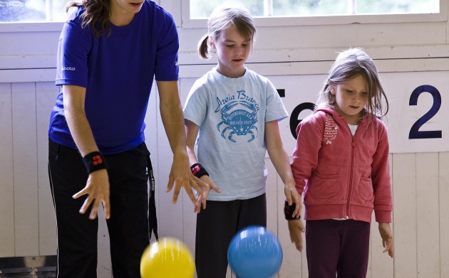 Durante l'esercizio i bambini si allenano a lanciare le palle in modo variato e corretto...