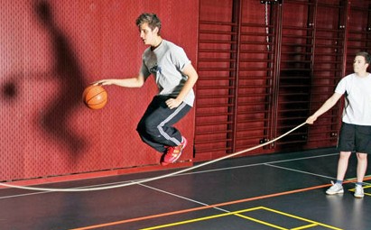 Durante questo esercizo gli allievi imparano non soltanto a saltare con la corda lunga ma...