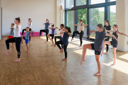 Les enfants et les jeunes ont besoin d’avoir un bon équilibre pour enchaîner les mouvements avec aisance et se déplacer comme souhaité. Grâce à une bonne coordination entre les différentes parties du corps, ils se maintiennent en équilibre tout en exécutant des suites de mouvements et en restant synchronisés avec d’autres danseuses et danseurs. Ils sont en mesure de tenir en équilibre sans difficulté, en appui sur un pied ou sur d’autres parties du corps. Ils gardent chaque position brièvement ou plus longuement, créant ainsi une véritable animation.