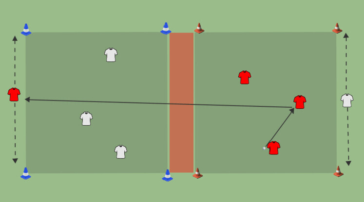 Die Spielerinnen und Spieler nehmen den Ball, den Raum wie auch die Mitspielerinnen und -spieler sowie die Gegnerinnen und Gegner wahr. Beim Spielaufbau nutzen sie die Breite und die Tiefe des Spielfelds. Sie sind initiativ und finden gemeinsam Lösungen. Ihren Mitspielerinnen und -spielern passen sie in Bewegung flach in die Vorhand. Dabei bleiben die Pässe ausserhalb der Reichweite der Gegenspielerinnen und -spieler.