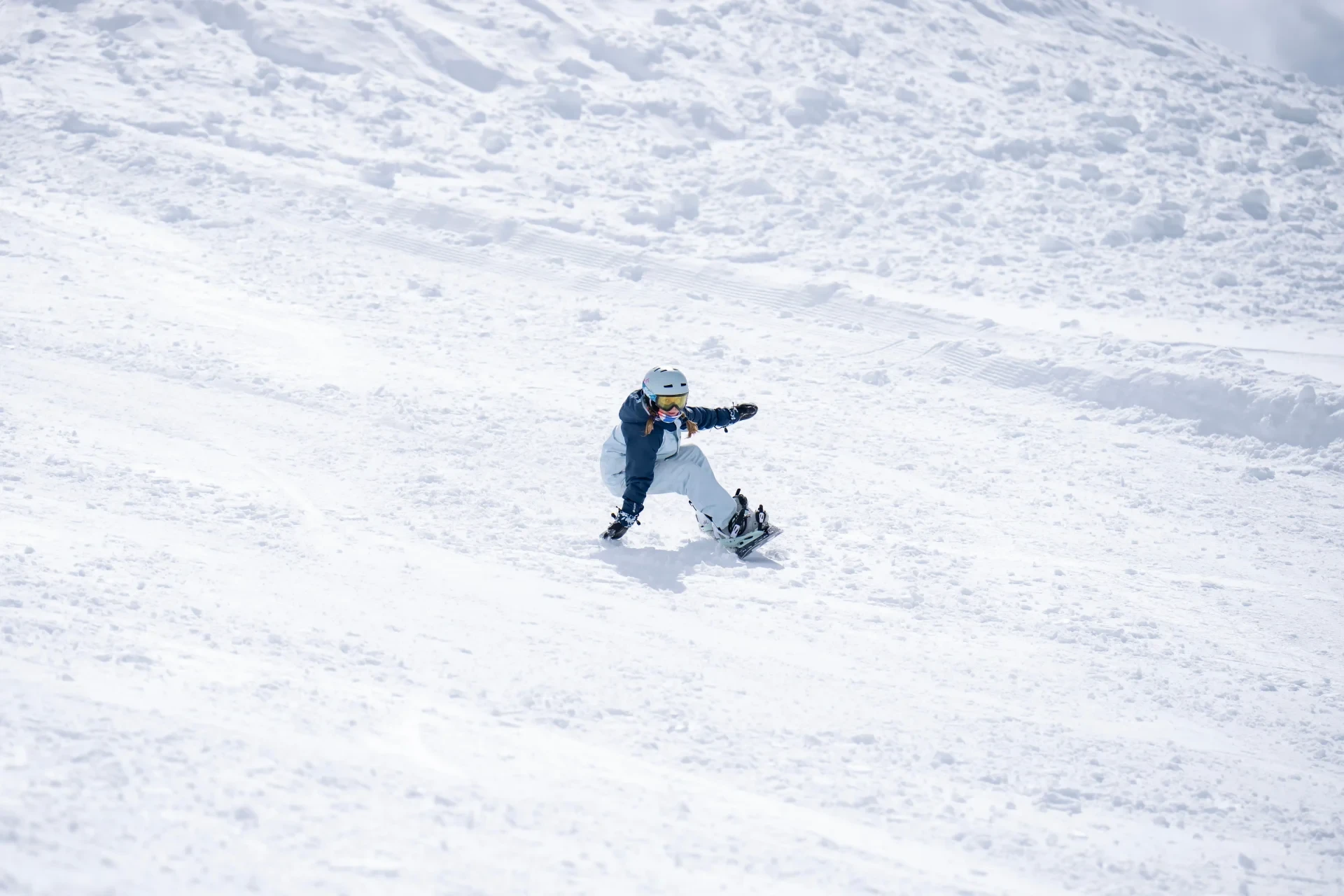 Le snowboarder e gli snowboarder devono approcciarsi al terreno in modo che questo supporti un’esecuzione ludica dei trick. Un trick ben eseguito richiede uno sforzo limitato e si contraddistingue per la fluidità dei movimenti. I trick su pista si possono combinare a piacere e completare con rotazioni e salti nonché eseguire sia in normal che in switch (all’indietro). In questo modo si crea varietà tecnica e si sviluppano stili individuali.