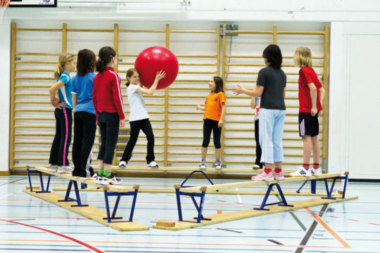In questo esercizio due partecipanti trasportano un'asta su cui è appeso un altro bambino. Il...