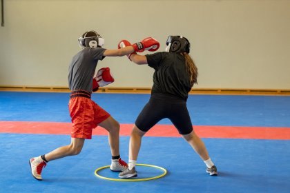 Les boxeurs apprennent à esquiver latéralement puis à frapper directement. Ils se défendent activement pour...