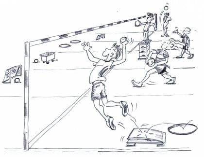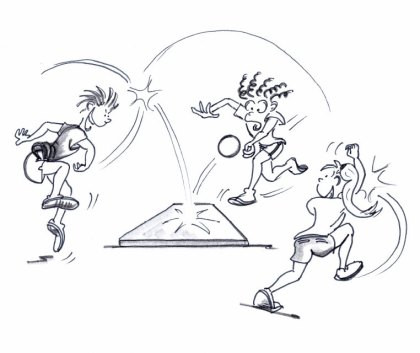 Les enfants et les jeunes combinent courses, sauts et frappes afin de viser leur cible....