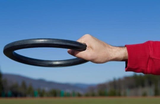 Mit diesem Schleuderspiel wird die Bewegung des Schleuderwerfens praktisch angewandt.