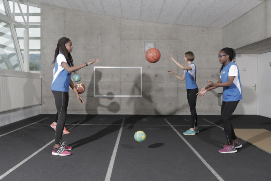 Jongliertricks mit zwei Bällen stehen in dieser Übung im Vordergrund. Die Schülerinnen müssen sich koordinieren...