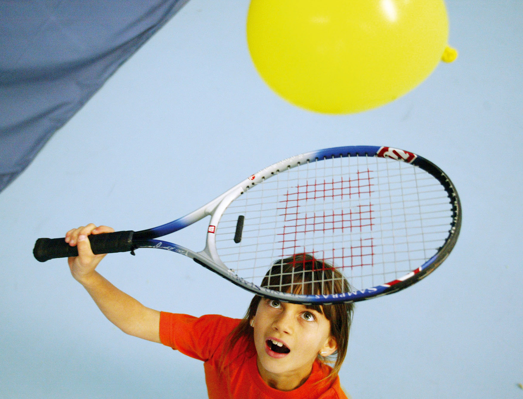 Les joueurs jonglent avec un ballon de baudruche au-dessus de leur tête. Qui réussit à maîtriser plusieurs ballons en même temps? Ou qui arrive à jongler tout en se déplaçant en avant, en arrière, le long d’une ligne, en slalom, par-dessus des obstacles? Avec la raquette ou avec les mains.
